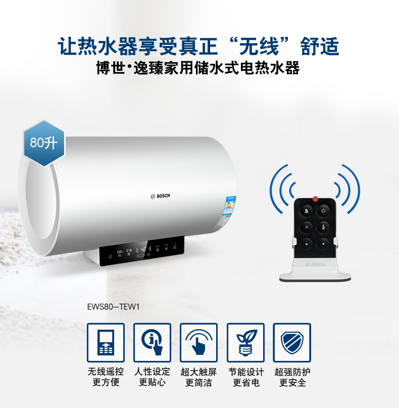 電子式控制,觸摸按鍵。無(wú)線遙控器。可選容積為50L/60L/80L/100L。