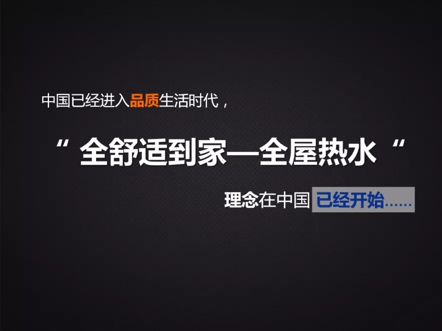 中國已經(jīng)進入品質(zhì)生活時代,消費逐步升級,“全舒適到家—全屋熱水”理念在中國已經(jīng)開始,全屋熱水時代已經(jīng)到來。未來邁能會為大家提供更多有價值的解決方案,謝謝!